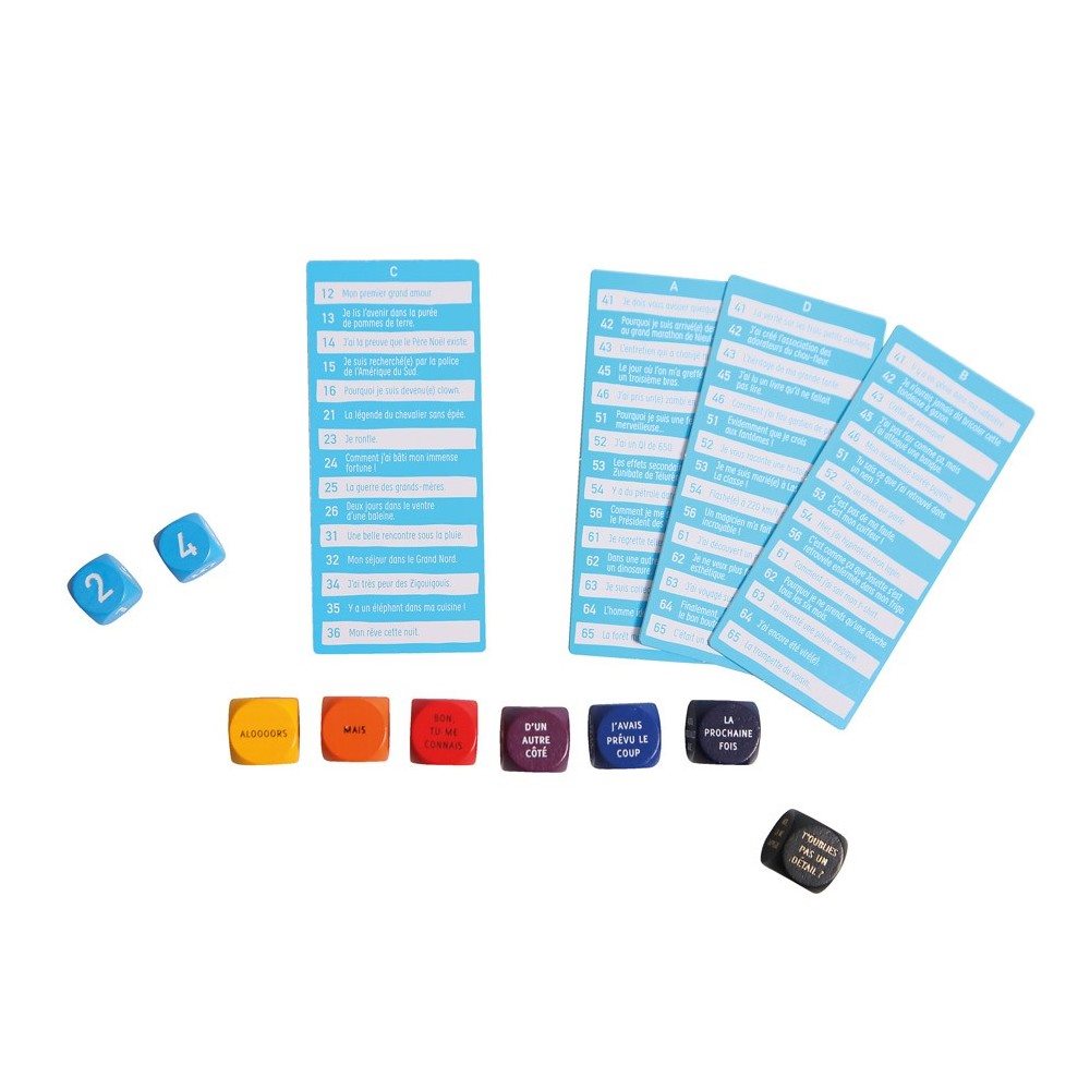 Les joueurs devront tour à tour raconter une histoire grâce à 120 thèmes et 6 dés connecteurs.